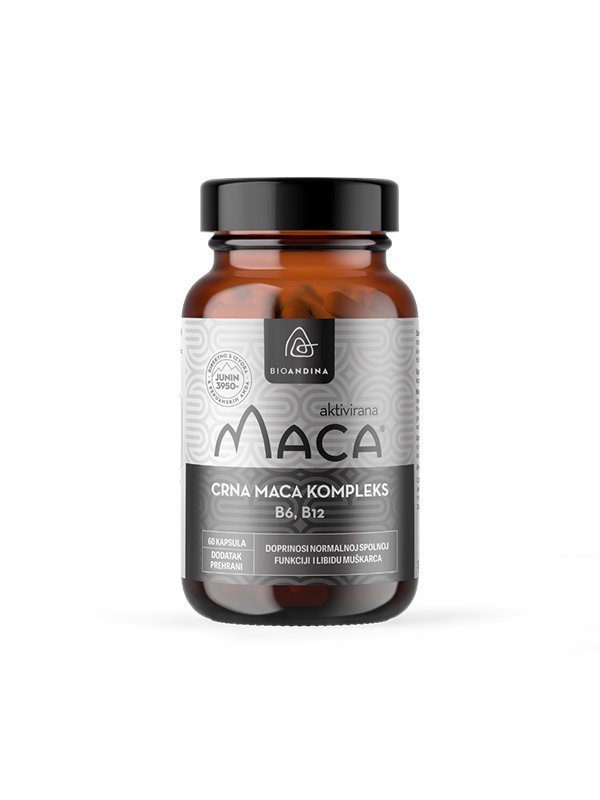 Bioandina Black Maca kompleks është një shtesë ushqimore në formë kapsulash që përmban ekstrakt të aktivizuar të Macës së Zi (15:1) dhe vitaminat B6 dhe B12. Sasia e ekstraktit të aktivizuar në një kapsulë përputhet me sasinë e 3000 mg të pluhurit të Macës së Zi të papërpunuar, ndërsa në dy kapsula (doza ditore e rekomanduar) përputhet me 6000 mg.